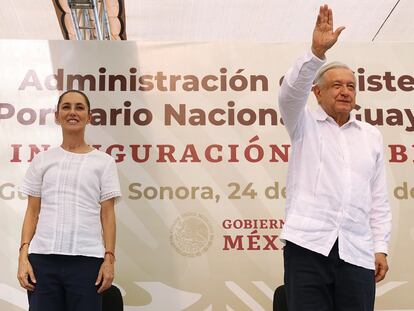 Aunque Sheinbaum repite el paso que marca el discurso del presidente en funciones, su posición es diametralmente opuesta: ella apenas llega, él ya se va