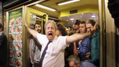 Alberto tiene 49 años, dos hijos y una mujer venezolana. Vivió en Venezuela hasta hace unos cinco años, cuando se marchó después de que sus negocios empezaran a encontrarse con problemas. “Ya he visto cosas como estas y no me gustan”, dice ceremonioso. Asegura que por la tarde ya se habían sucedido varias carreras de manifestantes, así que llamó al dueño del local y le preguntó si se mantenían abiertos. “Nosotros necesitamos a la gente para vivir, y en algún momento la gente puede necesitarnos a nosotros”, asegura que le dijo su jefe. Cuando vio la multitud corriendo hacia su bar promete que necesitó sacar fuerzas de flaqueza. “Traían caras de terror huyendo de los palos. Eso no puede ser. Yo me planté luego delante de los policías y les dije que no iban a entrar”.