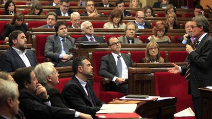 El presidente de la Generalitat, Artur Mas, ha mantenido hoy en el Parlamento catalán un duro enfrentamiento con el Partido Popular y Ciutadans, las dos fuerzas más combativas con el proceso soberanista que impulsa su Gobierno. Ante las acusaciones de falta de espíritu democrático y de fomentar actuaciones ilegales formuladas por la líder del PP catalán Alicia Sánchez-Camacho, Mas ha apelado al Gobierno a permitir la consulta y a no utilizar las leyes para impedir que los catalanes voten sobre su futuro. “Si las leyes solo fueran leyes y no tuvieran espíritu, las mujeres no votarían y los esclavos continuarían siendo esclavos”, ha remachado Mas.