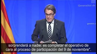 Artur Mas ha anunciado esta tarde que el 9-N es imparable y que ignorará una posible y nueva suspensión del Tribunal Constitucional a propuesta del Gobierno central. Apenas unas horas después de que el Consejo de Ministros aprobara la impugnación ante el Tribunal Constitucional, el presidente catalán ha comparecido ante la prensa para asegurar que la Generalitat completará los preparativos pendientes del “proceso de participación” y cargó con dureza contra el Gobierno del PP.