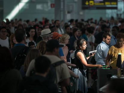Los empleados de Eulen encargados de los filtros de seguridad en el aeropuerto de El Prat, en Barcelona, han acudido a la huelga este viernes. El conflicto laboral ha explotado en plena operación salida de agosto. Un audio confirma la huelga de celo que los trabajadores siempre habían negado: "Si hay colas, todo está ganado", dijo una portavoz del comité de empresa. Las colas en los controles de pasajeros han alcanzado este mediodía la hora de espera en la terminal 1 y casi han llegado a las dos horas en la terminal 2, según fuentes de Aena. Esta tarde, el tiempo de espera ha disminuido y a última hora la situación era de práctica normalidad. Si los representantes de los trabajadores de Eulen y la dirección de la empresa no llegan a un acuerdo este viernes, los días 6, 7, 11 y 13 de agosto volverá a haber paros parciales.