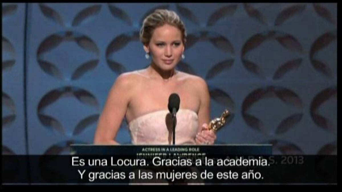Jennifer Lawrence se ha llevado el premio a Mejor actriz por su actuación en El lado bueno de las cosas. Era la favorita y no ha sido una sorpresa. Su discurso ha sido como toda la ceremonia, correcto, sin sorpresas. Pero el momento que más ha gustado ha sido cuando al subir al escenario a recoger el galardón la actriz ha tropezado e inmediatamente Hugh Jackman, sentado en la primera fila, ha saltado como un resorte para ayudarla. "Todos os levantáis porque os sentís mal porque me he caído", ha dicho Lawrence cuando gran parte del auditorio la ha ovacionado levantándose, una vez más, de sus asientos. Al retirarse del escenario, la joven actriz le ha lanzado una mirada cómplice al actor australiano.