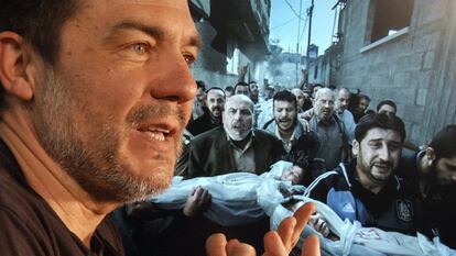La fotografía en cuestión retrata a dos hombres palestinos, acompañados por un río de personas, que llevan por una calle de Gaza los cadáveres de dos niños, envuelto en sábanas blancas. Hansen, que trabaja para el diario sueco Dagens Nyheter, contó en su momento que los hombres llevaban a los menores hasta la mezquita. Detrás iba el cadáver del padre, en una camilla, y envuelto también en lienzos blancos. Los pequeños, Suhaib Hijzi y su hermano, Mohamed, tenían dos y tres años y perecieron en el bombardeo que destruyó su casa. El misil que reventó el edificio provenía del Ejército israelí, según el relato del fotógrafo.