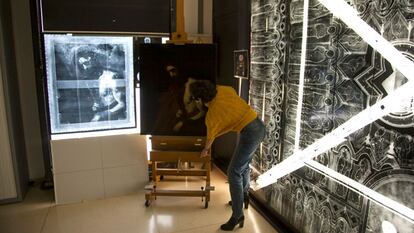 Los primeros análisis del Ribera que acaba de llegar desde la Academia de Bellas Artes de San Fernando, una obra datada en el 1620, también revelan restauraciones anteriores muy agresivas. Los rayos X muestran repintes clarísimos. Ahora mismo, la obra está en el sótano del edificio, en la zona de seguridad nuclear porque allí se llevan a cabo las radiografías. "Es necesario hacer un estudio a fondo para realizar una propuesta de tratamiento", explica Cristina Salas, que se está ocupando del cuadro. El trabajo pasa por la documentación, por el estudio del soporte, por los análisis. El objetivo final requiere un equilibrio: volver al original pero dejando claro, a los ojos de los especialistas, que ha pasado por un proceso de restauración.