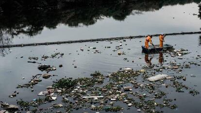 Los eco-barcos, los encargados de limpiar la basura que se cuela, están recogiendo 45 toneladas de basura al mes. La descontaminación de la Bahía de Guanabara, que recibe diariamente los desechos de nueve millones de personas que no tienen acceso a alcantarillado, además de los residuos de la industria petrolera local, fue una de las ambiciosas promesas olímpicas para que Río conquistase los Juegos.