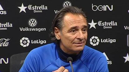 Prandelli señala a la plantilla de todos los males del Valencia en las dos últimas temporadas, criticando implícitamente a quienes la han confeccionado, con García Pitarch y Jorge Mendes, el agente, al frente de los responsables. Su comparecencia en la previa del partido del sábado en Anoeta ante la Real Sociedad (16:15 horas), resultó incendiaria, sin admitir preguntas de los periodistas. La filípica pública del exseleccionador italiano hacia sus jugadores resultó hiriente, esclarecedora. “Hablaré lentamente [en italiano], para que todos me entiendan. Hoy por primera vez estoy enfadado, muy enfadado. Por primera vez estoy muy decepcionado, porque estoy trabajando dos meses con sacrificio, orgullo, con la voluntad de ayudar a este equipo a crecer. Yo mañana (en Anoeta), quiero ver un equipo que tenga carácter, la voluntad de sufrir por esta camiseta”, arengó Prandelli a sus futbolistas.