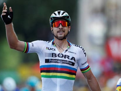Minutos después, el corazón desacelerado, la adrenalina desalojada de su torrente sanguíneo y la razón en su sitio, Sagan se fue a la puerta del autobús a esperar a Cavendish para pedirle disculpas, que el inglés apodado Cannonball aceptó. No así los responsables de su equipo, el Dimension Data, que pidieron y consiguieron la expulsión del bárbaro eslovaco y su maillot arcoíris, tan simpático y carismático en la victoria, como el día anterior, cuando venció con una sola pierna en la cuesta de Longwy.
