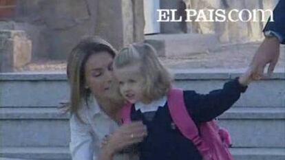 Lo contó ella misma con una sonrisa picarona a los periodistas que la esperaban: "Voy al cole de mayores". Leonor de Borbón y Ortiz no lloró, todo lo contrario; llegó caminando de la mano de sus padres, los Príncipes de Asturias, al colegio Santa María de los Rosales, en Aravaca (Madrid), para comenzar su formación escolar. La heredera del heredero es uno de los 22 alumnos de una de las tres clases de educación infantil.