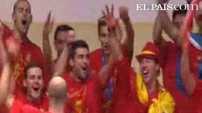 No tuvo más remedio el centrocampista del Barça que tomar la palabra ante la petición del presidente. "Si lo sé no meto el gol... pero voy a hablar un poquito", admitía con gracejo Iniesta, quien añadía que "esta copita es de todos". Momentos antes, el capitán, Casillas, no dudó en anunciar que "se va a hablar de España como campeona durante los próximos cuatro años".