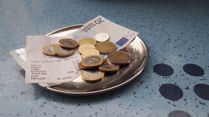 El español es poco generoso con las propinas. A diferencia de otros países, como EE UU, donde la propina está, si no oficializada, sí muy extendida, en España depende de la voluntad del cliente. Y a tenor de lo que opinan los propietarios de negocios de hostelería, esa voluntad no pasa de discreta. Un 74% de los clientes deja, como en el chiste, entre poco (menos del 5% de la cuenta) y nada, mientras que apenas un 3% agradece efusivamente el servicio con un añadido de entre el 10 y el 20% del importe de lo servido, según el estudio El hostelero: un emprendedor detrás de la barra, elaborado por la Federación Española de Hostelería (FEHR) y Makro. Además, la mitad de ellos asegura haber visto cómo algún cliente se marchaba sin pagar, lo que coloquialmente se conoce como hacer un simpa.