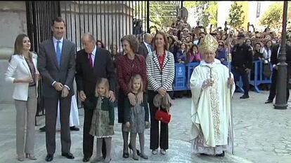 Los Reyes, los príncipes de Asturias, sus hijas Leonor y Sofía, y la infanta Elena, siguieron el oficio pascual en la monumental seo gótica, donde llegaron y salieron aplaudidos y jaleados por más de medio millar de ciudadanos apostados en la calle. La mayoría eran turistas de vacaciones y vecinos. Hubo vítores y vivas al rey, la reina, el príncipe y España.
