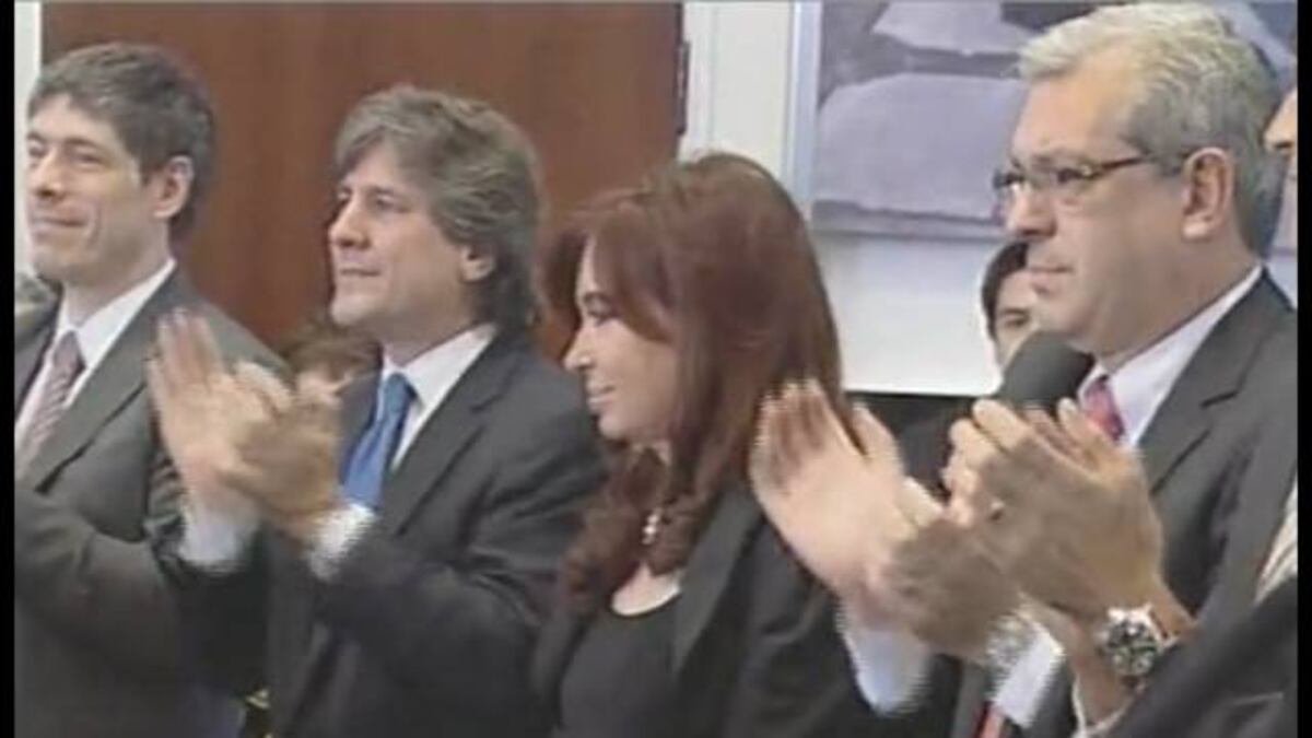 Previamente, una portavoz leyó los artículos del proyecto de ley de expropiación que ya está en el Congreso. La primera ovación se produjo al anunciar la declaración de utilidad pública la mayoría del capital de la petrolera hispano argentina.