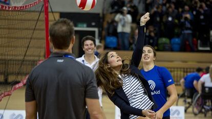 Kate Middleton ha retomado su agenda oficial solo cinco días antes del bautizo de su hijo Jorge, previsto para el próximo miércoles. La duquesa de Cambridge ha reaparecido en el Parque Olímpico, donde ha asistido a un acto de SportsAid, fundación de la que es patrona, y que se dedica a apoyar a jóvenes con problemas de movilidad que practican deporte. Kate, que se encuentra ya en plena forma tras el embarazo y el parto, jugó con los atletas durante algunos minutos.