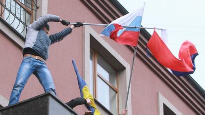 Coincidiendo con la celebración del referéndum de adhesión a Rusia en Crimea, manifestantes prorrusos han irrumpido en la sede del Ministerio Fiscal en Donetsk (ciudad al este de Ucrania) al grito de "somos una ciudad rusa".