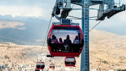 Acceder desde la zona sur de La Paz hasta El Alto, o viceversa, era una odisea hasta hace tres meses para los miles de trabajadores que todos los días cambiaban una ciudad por otra. La escarpadísima orografía, la deficiente planificación urbanística y la ausencia de un transporte público convencional provocan a diario incontrolables congestiones de tráfico. Para salvarlas, y también para asegurarse un buen número de votos en las próximas elecciones del 12 de octubre, el presidente Evo Morales destinó 178 millones de euros del presupuesto nacional para construir tres líneas de teleférico que conectarán 10 estaciones entre las dos ciudades. Hoy apenas se tardan 10 minutos en llegar desde el centro de La Paz hasta la avenida 16 de Julio de El Alto, escaparate del mayor mercado informal de toda Latinoamérica. Hasta ahora solo había un teleférico turístico en Bolivia, en la ciudad de Cochabamba (centro)