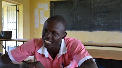 Cuando terminó la escuela secundaria, Edema Charles Daniel empezó a trabajar con Movement for Health Internacional (MHI) y luego con International Rescue Committee (IRC), en programas de prevención de la polio. Era un movilizador comunitario y concienciaba a la población sobre la importancia de vacunar a los niños. Es ahí cuando se enteró de las altas tasas de mortalidad materna e infantil de Sudán del Sur y pensó que no era justo y quiso hacer algo para cambiar la situación, es por eso que decidió estudiar para ser una matrona. “Sé que muchos piensan que es raro que un hombre decida ser comadrón, pero yo tengo el interés y me gusta lo que aprendo. El problema es el dinero para pagar los cursos, no es fácil conseguirlo. Mi sueño es terminar aquí y seguir preparándome para convertirme en profesor de esta misma escuela y así enseñar a muchas más personas la necesidad de educar a las comunidades para combatir las altas tasas de mortalidad materna e infantil de nuestro país”.