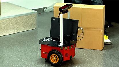 Un robot transita por la Facultad de Matemáticas de la Universidad Complutense de Madrid. Es pequeño, a veces ruidoso, y se desliza lentamente por los pasillos mientras sortea a los alumnos que transitan de aula en aula. Se mueve con la suficiente intuición como para detectar y esquivar obstáculos imprevistos, como personas en movimiento. El autómata ha sido desarrollado por un pequeño grupo de investigadores españoles que está consiguiendo que el robot vea. No que mire, sino que vea como puede ver un ojo humano. Que identifique objetos y caras en el entorno, que intuya la actitud de la persona para saber si va a colaborar con él y, en función de ello, tomar la decisión de esquivar o no.