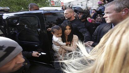 Kim Kardashian y Kanye West mueven multitudes fuera de Estados Unidos. Al menos eso es lo que han vivido en su reciente viaje a Armenia -donde decenas de periodistas les esperaban en el aeropuerto- y durante su estancia en Jerusalén. Si durante los días que estuvo en Armenia la estrella del reality show estadounidense -junto a una de sus hermanas y dos primas suyas- llegó a ser recibida por el primer ministro del país, el bautizo de su hija en Jerusalén congregó a infinidad de curiosos ataviados con sus cámaras y smartphones a las afueras del templo.