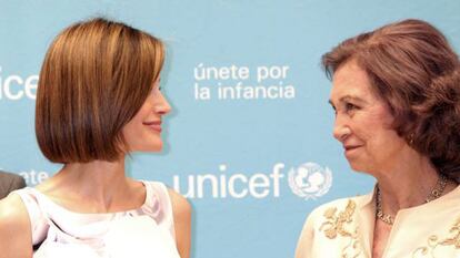 La esposa de Felipe VI entrega a la madre del Rey el premio Joaquín Ruiz-Giménez del Comité Español de UNICEF