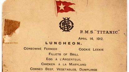 Una casa inglesa saca a la venta varios objetos relacionados con supervivientes del naufragio y espera obtener más de 60.000 euros por la hoja que detalla la última comida de los pasajeros de primera
