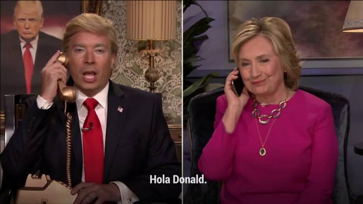 El humorista Jimmy Fallon imita al candidato republicano y recrea una conversación teléfonica con Clinton