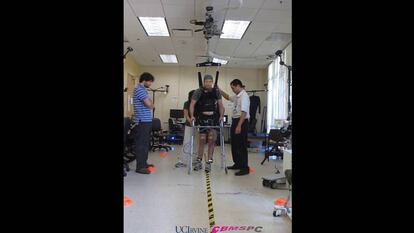 Recorrió apenas 3,60 metros, tardando cuatro segundos en cada paso y medio suspendido en el aire con un arnés, pero fueron los primeros pasos que John Smith (nombre ficticio) ha dado tras varios años en una silla de ruedas. Son los prometedores resultados de una investigación que aprovecha el deseo de caminar escondido en las ondas cerebrales y, puenteando una médula espinal destrozada, convertirlo en señales eléctricas que activan los músculos de las piernas.