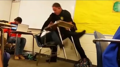 Un nuevo episodio de violencia policial ha conmocionado a Estados Unidos. Después de la serie de incidentes del último año, en los que agentes empleaban uso de fuerza excesiva contra ciudadanos afroamericanos hasta causar su muerte, este último ha tenido lugar en una escuela de Carolina del Sur. Ocurrió este lunes en el instituto Spring Valley de la ciudad de Columbia y, tal y como revela un vídeo grabado por otro estudiante, el policía agarra violentamente a una alumna por el cuello y una pierna, tirándole violentamente contra el suelo y volcando su mesa. La escena es presenciada por el resto de compañeros que evitan mirar a lo que sucede a su alrededor.