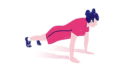 Colóquese bocabajo, apoye las manos y la punta de los pies en el suelo y mantenga el cuerpo en línea recta tanto como pueda hasta 30 segundos. Evite mover las caderas. Y no aguante la respiración.