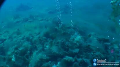 Los autores del trabajo han investigado con robots y buzos el fondo marino de un grupo de surgencias –salidas de masas de agua hacia la superficie–, a una profundidad de 40 metros. Estas se encontraban en el archipiélago de las Columbretas, a 56 kilómetros de distancia de la costa de Castellón. ¿Por qué estudiarlas? En primer lugar, porque “sirven de laboratorio de lo que pasará” por el dióxido de carbono que emiten, explica Cristina Linares, investigadora de la Universidad de Barcelona (UB) y una de las autoras del estudio: “Los valores de pH que observamos en las surgencias son de 7,8 o 7,9, muy similares al que se prevé para finales de siglo”. En los alrededores, el pH es del 8,1. Un equipo de científicos de la UB, la Universidad de Girona, el CSIC y la Estación Zoológica Anton Dohrn de Italia ha realizado el trabajo.