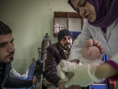 Fue cuando llegamos a uno de los dos únicos hospitales operativos en la zona cuando surgió la contradicción, la vida y la muerte. Un padre llevó a su hijo, que había sido disparado en la cara, y vimos cómo los médicos y enfermeras corrían a atenderle. El hospital opera –pese a haber sido bombardeado- a una capacidad mínima, utilizando instrumental quirúrgico antiguo y anestesia caducada, porque la entrada de nuevos suministros es denegada constantemente. Miré la cara de ese padre, una cara cubierta por la desesperación y la ira. Desesperación por una guerra que le había robado a su hijo. Ira contra el mundo entero.