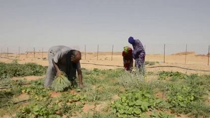 "Pero hay plantas que pueden resistir, y con mucho abono, e incluso con agua salina, lo logramos", se enorgullece el ingeniero agrónomo Mohamed Mouloud Lahsen, de 45 años, que dirige la escuela de agricultura Mohamed Salem Pakito del Ministerio de Desarrollo Económico, a la que asisten 16 alumnas (todas son mujeres). En las cuatro calcinadas hectáreas del recinto cosechan remolacha, nabos, zanahorias, lechugas, cebollas, coles, tomates, pimientos, berenjenas, perejil, cilantro y menta, y también alfalfa, cebada, sorgo o mijo para el ganado.