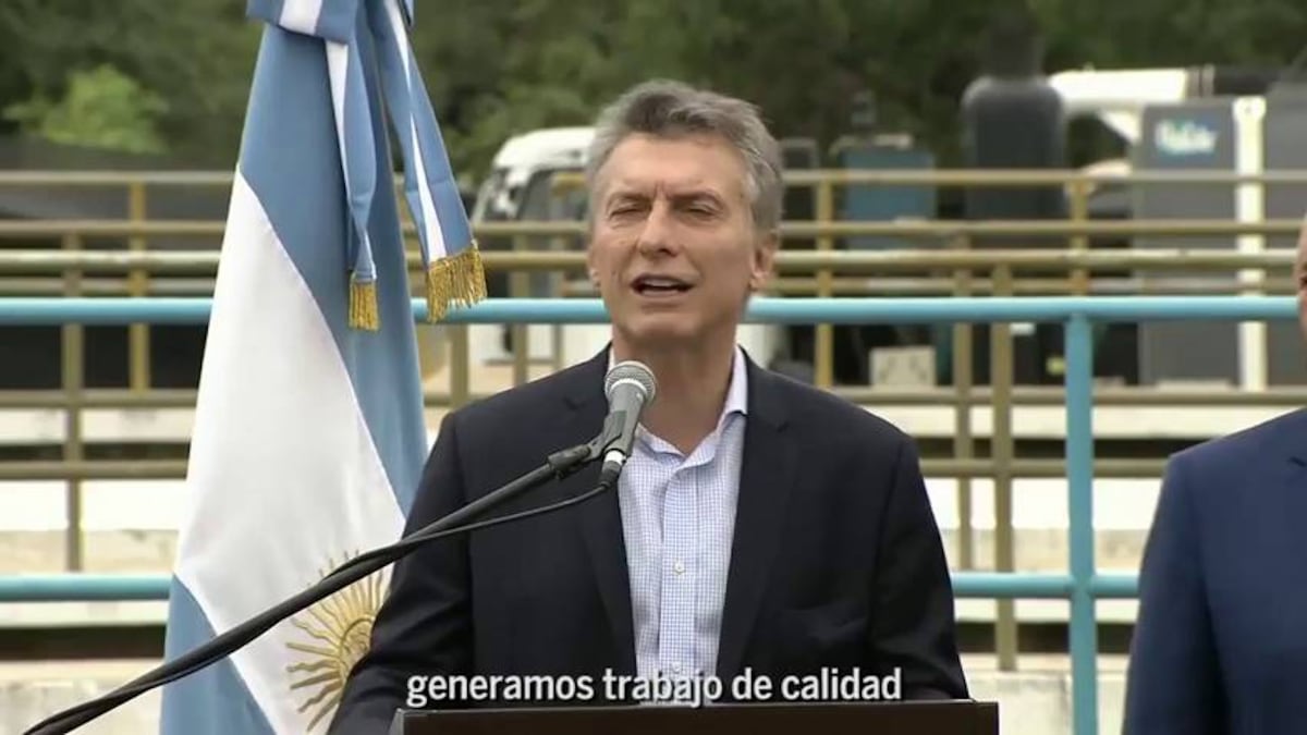El viento jugó una mala pasada al presidente argentino, Mauricio Macri. En medio de un discurso en la provincia norteña de Formosa, una bandera argentina se le cayó en la cabeza cuando hacía referencia a su intención de generar "trabajo de calidad". El incidente ocurrió en la localidad formoseña de Clorinda, durante un acto público en el que el mandatario anunció el inicio de obras de una nueva planta potabilizadora de agua.