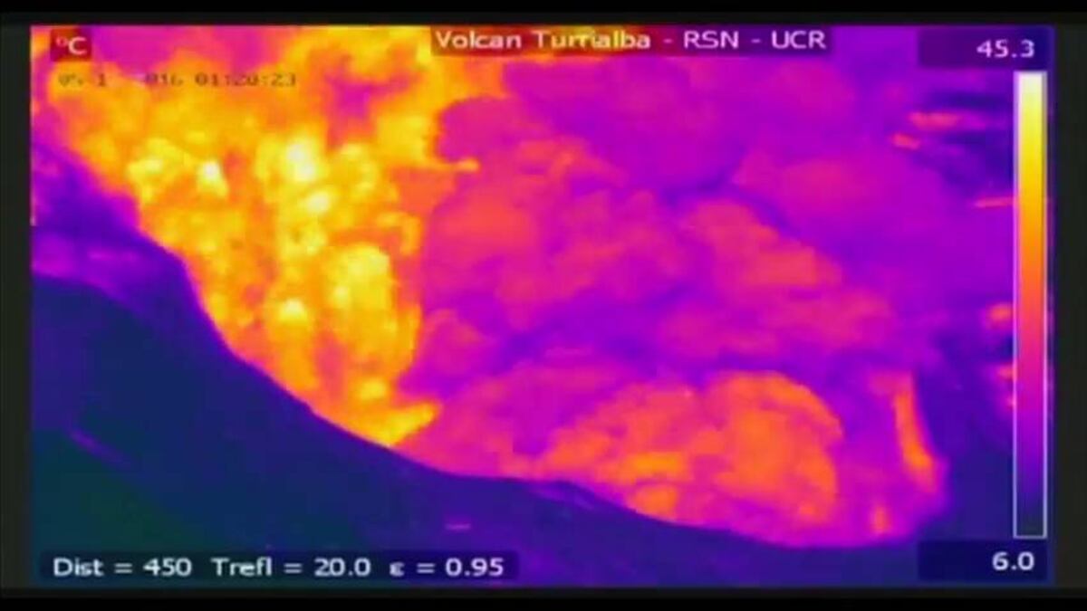Una cámara infrarroja captura el momento exacto en que el volcán Turrialba en Costa Rica, hace erupción