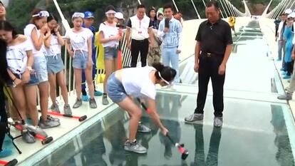 Bajo el cielo del parque forestal chino en el que se basa al filme de Avatar se alza ya el puente levadizo de cristal más grande del mundo. Mide 430 metros de largo y tiene seis metros de ancho. Cualquiera que camine sobre él tendrá a sus pies uno de los parques naturales más espectaculares a 300 metros de altura, en la provincia de Zhangjiajie, en el centro del país. El visitante puede estar tranquilo de su resistencia; sobre todo después de que sus ingenieros hayan demostrado, a base de martillazos y un coche de 15 toneladas circulando sobre su suelo, que esta plataforma no se inmuta. El diseño del puente ha corrido a cargo de un grupo de arquitectos encabezado por el israelí Haim Dotan. Y, aunque su construcción terminó el pasado mayo, hasta julio no se inaugurará oficialmente. Antes ha tenido que pasar la prueba de resistencia hasta en 100 ocasiones. En especial después de que, en 2015, un puente similar sufriera una fractura en el suelo cuando a un hombre se le cayó una taza.