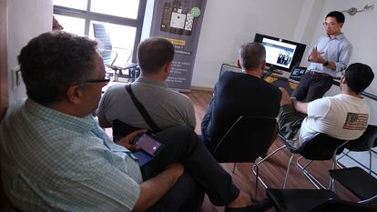 Unos diez taxistas asisten atentos, pacientes y con cara de curiosidad las clases de Jingru Bai, profesor de cultura e idioma chinos. "Nǐ hǎo" ("hola" en castellano) es la palabra que mejor han aprendido. Una palabra que les servirá para recibir a los turistas del país asiático de una manera más cálida y cercana. Pero no solo aprenden nuevos vocablos, sino también los gestos y la forma de comunicación no verbal que estos ciudadanos suelen utilizar, como evitar el contacto físico o no mirarles directamente a los ojos. En 2015, 110.000 turistas chinos visitaron Madrid —un 41% más que el año anterior—, unos 400.000 en toda España, según la empresa Chinese Friendly International.