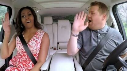 Michelle Obama parece no tener rival en la competición por ser la mujer más carismática en tiempo de elecciones en EE UU. En plena polémica después de que Melania Trump plagiara parte de unos de sus discursos en la convención del partido republicano, ahora la primera dama de los EE UU se ha subido al Carpool Karaoke del programa The late late show, presentado por el cómico James Corden. Como ya hicieron los Red Hot Chili Peppers o Jennifer Lopez, Obama canta desde el popular coche canciones de Beyoncé o Missy Elliot. El programa, que será emitido este miércoles por la cadena norteamericana CBS, ha avanzado en un vídeo parte del contenido.