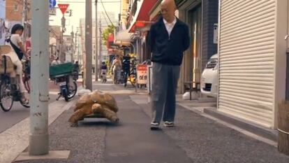 Bon-Chan se ha convertido en toda una celebridad en Tokio (Japón). Este ejemplar macho de tortuga gigante africana tiene 20 años y sale todos los días a pasear con su amo, Hisao Mitani. El japonés, que trabaja en el sector funerario, dice estar acostumbrado a que la gente se acerque para dar cariño a su excéntrica mascota. El hombre recuerda el día en el que conoció a su compañero, que en ese momento cabía en la palma de su mano: "Mi mujer se enamoró cuando lo vimos en una tienda de animales, así que decidimos llevarlo a casa". Hoy en día la tortuga pesa cerca de 70 kilos. "Sabíamos que iba a crecer, pero nunca esperamos que acabase siendo tan grande", explica Mitani. Las imágenes de ambos dando un paseo acumulan más de un millón de visitas en Internet.
