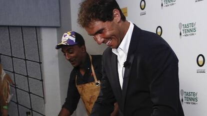 Partido de estrellas en pleno corazón de Manhattan con la sartén como raqueta. Rafa Nadal mantuvo un mano a mano ante los fogones con el chef neoyorquino Marcus Samuelsson, en el marco de una evento previo al abierto de tenis de Nueva York y dedicado a la promoción del aceite de oliva español. La víctima, un pez gato salteado con verduras que acabó en el fuego mientras los dos maestros conversaban. “Me gusta cocinar pero cuando está mi madre, se lo dejo a ella”, comentó el 14 veces ganador del Grand Slam.