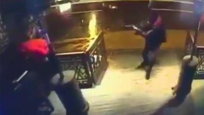 Las imágenes fueron grabadas por una cámara de seguridad ubicada en la entrada del local. Preceden a las de la llegada del atacante, que accedió al interior tras abatir al guardia de seguridad. Dentro mató a 39 personas e hirió a 69, a algunas de ellas de gravedad. El atentado lo ha reivindicado el ISIS y la policía de Turquía aún busca a su ejecutor, que logró huir haciéndose pasar por un civil asustado.