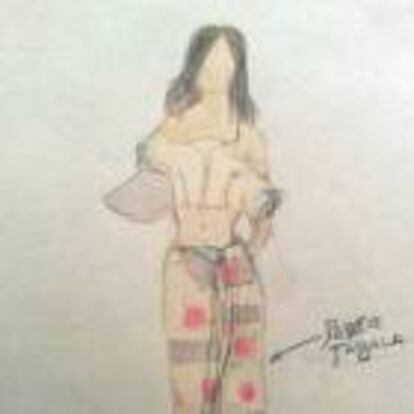 Torres no estuvo presente durante la Gala, en su nombre, Carlos Díez recogió su cabezón al Mejor diseño de vestuario por 1898. Los últimos de Filipinas. En la imagen, el boceto con el que la Academia anuncia el galardón.