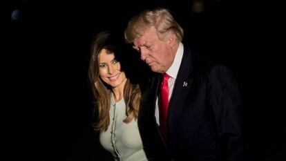 Mirada perdida. La primera dama de Estados Unidos y el presidente también dieron que hablar en una ceremonia pública con sus simpatizantes en el aeropuerto de Orlando Melbourne, Florida. En este multitudinario evento, al que asistieron aproximadamente 9.000 personas, según la policía, se dio una escena particular en el momento de la intervención de Melania. Ella se encontraba dirigiéndose al público cuando apareció por detrás Donald Trump y le tocó el brazo como una señal de respaldo, sin embargo, la esposa del mandatario perdió su mirada y no respondió con el mismo gesto. En otras ocasiones, ha sido Trump quien ha insistido —muchos dirían que incluso demasiado— para que ella hable en público sin querer hacerlo.