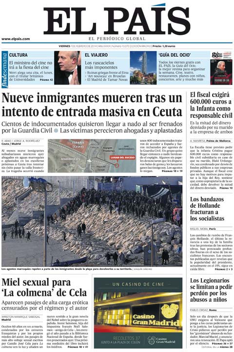 Sus sueños se esfumaron a las 7.40. Ocurrió en una fría mañana en la que, tras horas caminando a la intemperie, decenas de inmigrantes se lanzaron al mar para alcanzar el mundo que anhelaban. Se entregaron al Mediterráneo aunque algunos ni siquiera supieran nadar. Aunque resonaran los disparos y volaran las pelotas de goma. Aunque a sus espaldas fueran cayendo los compañeros. Muertos. Ahogados a las puertas de Europa. Uno tras otro. Hasta sumar 15. La tragedia se incrustó el pasado 6 de febrero en la pedregosa arena de la playa ceutí de Tarajal, donde 15 subsaharianos perdieron la vista ante la mirada de la Guardia Civil. En el episodio que marcó un punto de inflexión en la historia migratoria del país y que definió la política del Gobierno en la materia para todo 2014.