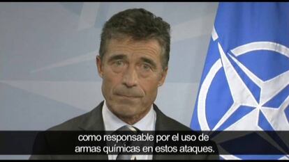A las amenazas de represalias directas que ya han lanzado contra Siria países como EE UU, Francia, Reino Unido o Turquía se han sumado hoy las de la OTAN. Su secretario general, el danés Anders Fogh Rasmussen no se ha limitado a condenar “en los términos más duros posibles” el ataque con armas químicas en los alrededores de Damasco del pasado 21 de agosto. También asegura que “la información disponible de distintas fuentes” apunta al régimen de Bachar el Asad como responsable. Y ha ido un paso más allá: “Cualquier uso de estas armas es inaceptable y no puede quedar sin respuesta”, ha señalado en un comunicado tras reunirse con los embajadores de los 28 países miembros de la Organización del Tratado del Atlántico Norte.