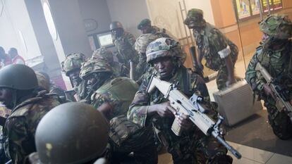 Al parecer, los asaltantes se habían atrincherado en un supermercado de Nakumatt, la primera cadena agroalimentaria keniana, en la planta baja. Arriba, nadie se atrevía a salir de las tiendas. "Mi hija no paraba de llorar. Había mucho ruido y disparos", apunta. Dos niños, de 9 y 11, que habían perdido a sus padres, esperaron junto a Silvia y el resto de los ocupantes de la tienda. Todos fueron liberados por los agentes de seguridad por el piso superior. "Nos sacaron en fila india", señala Silvia.