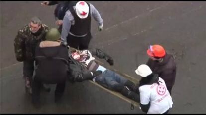 La información que dan las televisiones rusas —los principales canales pertenecen al Estado o están controlados por este— responsabiliza a la oposición por los desórdenes en Ucrania y acusa a los extremistas de atacar con armas de fuego a la policía. El corresponsal del primer canal mostraba ayer desde Kiev un escudo policial en el que se veían perforaciones de balas, según dijo, de pistola; además, exhibió casquillos de fusiles Kaláshnikov y otras huellas de armas de guerra, todo lo cual, afirmó, demostraba que los activistas radicales buscan provocar un derramamiento de sangre y un golpe de Estado. Las cámaras muestran el vandalismo de los extremistas mientras el público ruso piensa mayoritariamente que la culpa de todo lo tienen los grupos prooccidentales.