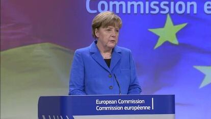 Más allá de Grecia, ambos mandatarios se han referido a la política de sanciones con Rusia. Tanto Juncker como Merkel aseguran estar centrados en el cumplimiento de los acuerdos de Minsk, especialmente del alto el fuego, aunque también han hablado de sanciones. “Si Minsk se vulnera, el Consejo Europeo y la Comisión Europea están dispuestos a considerar la preparación y la aprobación de nuevas medidas de sanción”, ha advertido la canciller. Juncker ha abogado por “mantener abiertos los canales de comunicación con Rusia”, aunque ha descartado reanudar las cumbres periódicas UE-Rusia que quedaron interrumpidas con la crisis de Ucrania.