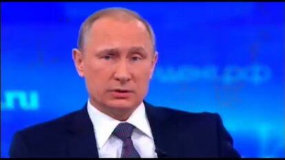 El presidente ruso, Vladímir Putin, ha afirmado hoy que las sanciones de Occidente contra Rusia persiguen frenar el desarrollo del país. "Les he dicho a los empresarios que por ahora no se puede esperar el levantamiento de las sanciones, porque se trata de un asunto político; es para algunos de nuestros socios un asunto de interacción estratégica con Rusia, para contener nuestro desarrollo", ha dicho Putin en su anual línea directa, un programa de televisión en directo en el que el dirigente responde a las preguntas que formulan los ciudadanos.