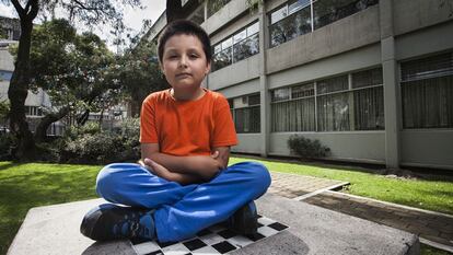 Los pies de Carlos Santamaría Díaz no tocan el suelo cuando se sienta en el pupitre del salón. En el pizarrón se entrevé una explicación sobre la composición de la proteína. Y todos sus compañeros parecen haber terminado, al menos, la licenciatura. Carlos tiene nueve años y está sentado en un aula de la Universidad Nacional Autónoma de México (UNAM). Todos los días, de cinco a nueve de la tarde, acude al diplomado de bioquímica y energía molecular en la Facultad de Química.