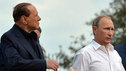 El líder ruso recibe al ex primer ministro italiano en una visita a la península anexionada por Rusia el año pasado