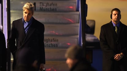 El hotel Hilton de Múnich acogió el jueves el pulso que los principales actores internacionales de la guerra siria echan para lograr una salida del conflicto lo más cercana a sus intereses. Tras unas negociaciones que se alargaron más allá de la medianoche, las potencias cerraron un acuerdo para iniciar un alto el fuego dentro de una semana. El propio secretario de Estado de EE UU, John Kerry, reconoció la fragilidad de un acuerdo que por ahora está solo “sobre el papel”, pero que su prueba definitiva llegará en los próximos días, cuando se vea si las partes implicadas “honran y ponen en marcha” el pacto.